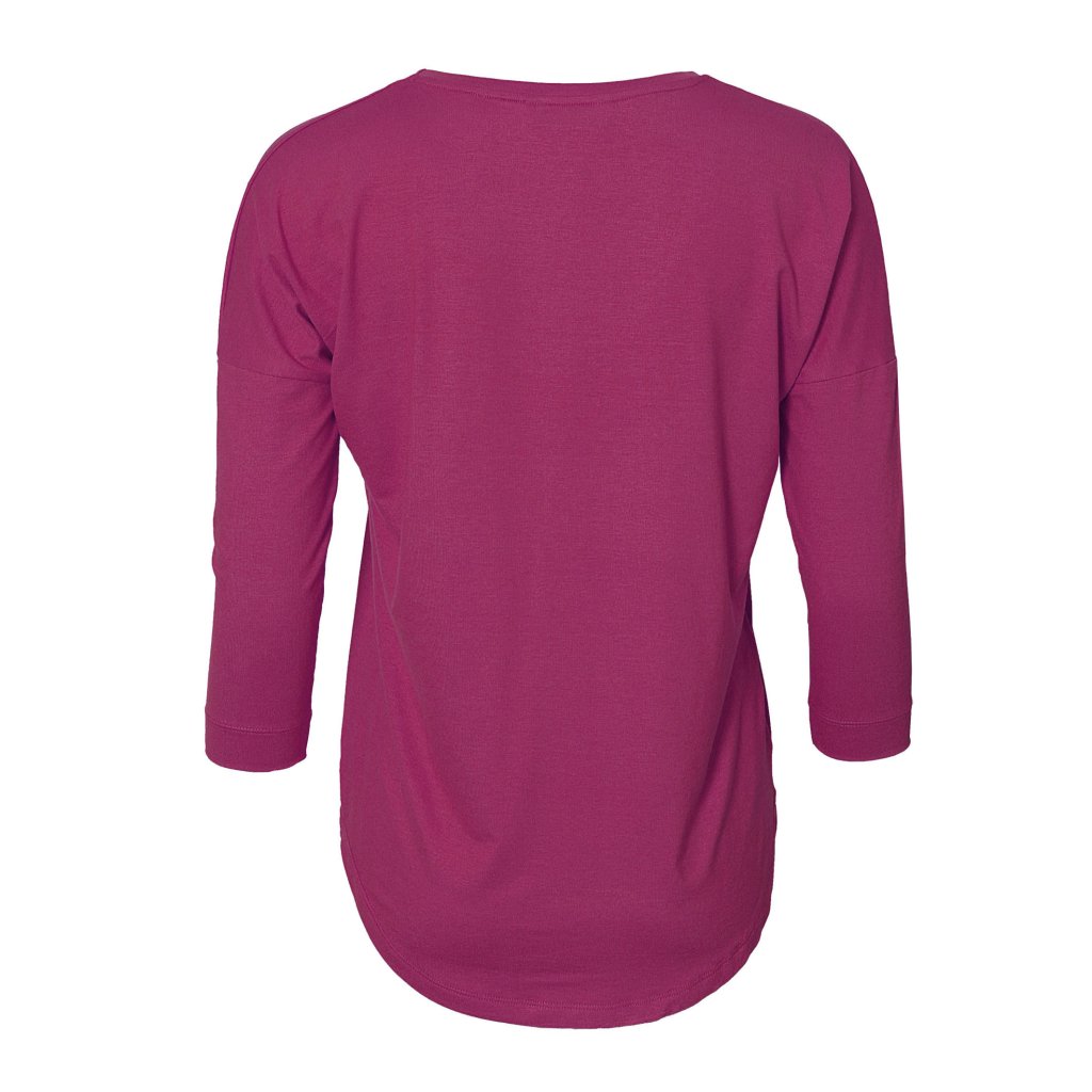 Dámské jednobarevné tričko s výstřihem je doplněné kokosovou etiketkou z blízké knoflíkárny. Oblíbený střih jsme nyní doplnili i o tuto novinku s 3/4 rukávy.