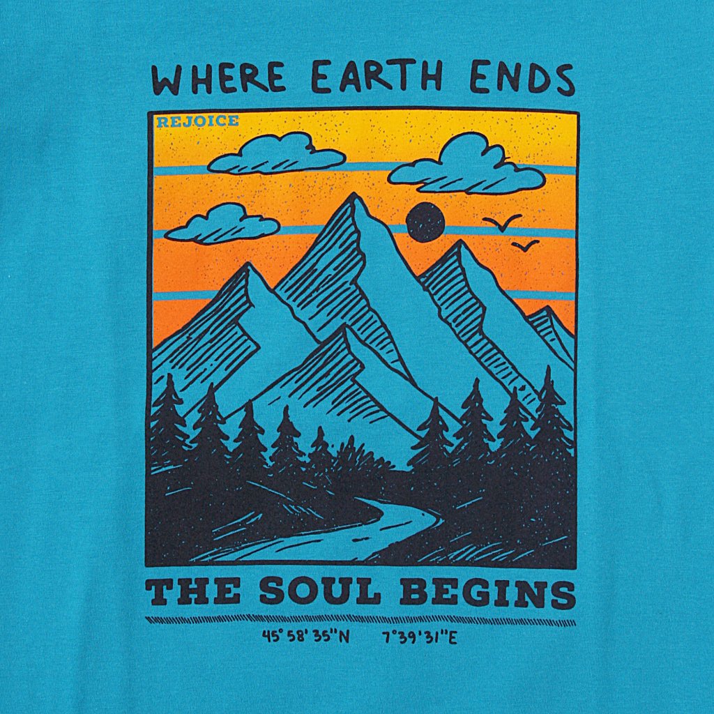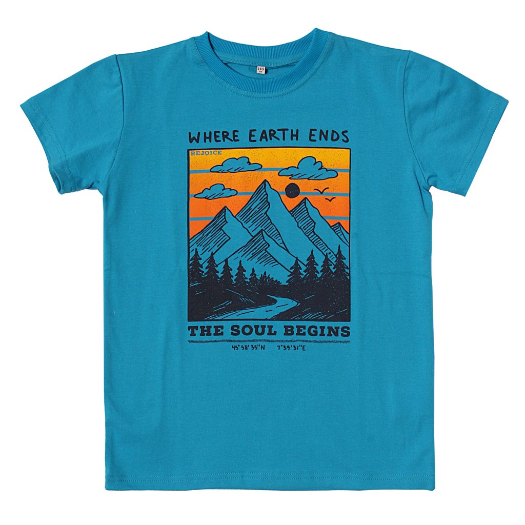 Kvalitní dětské tričko s veselým Rejoice designem.
