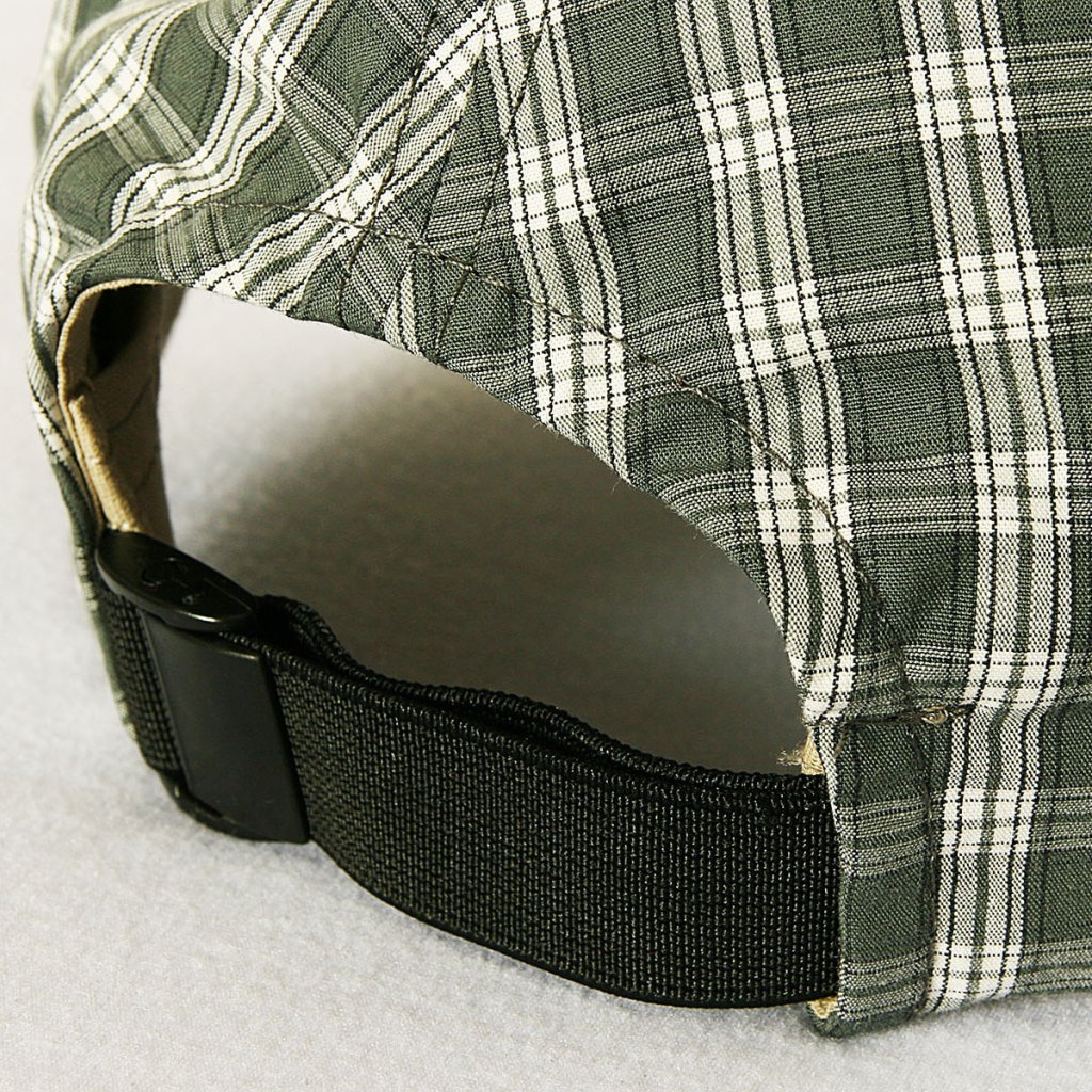 Vzadu se stahováním na plastovou přezku s gumou.