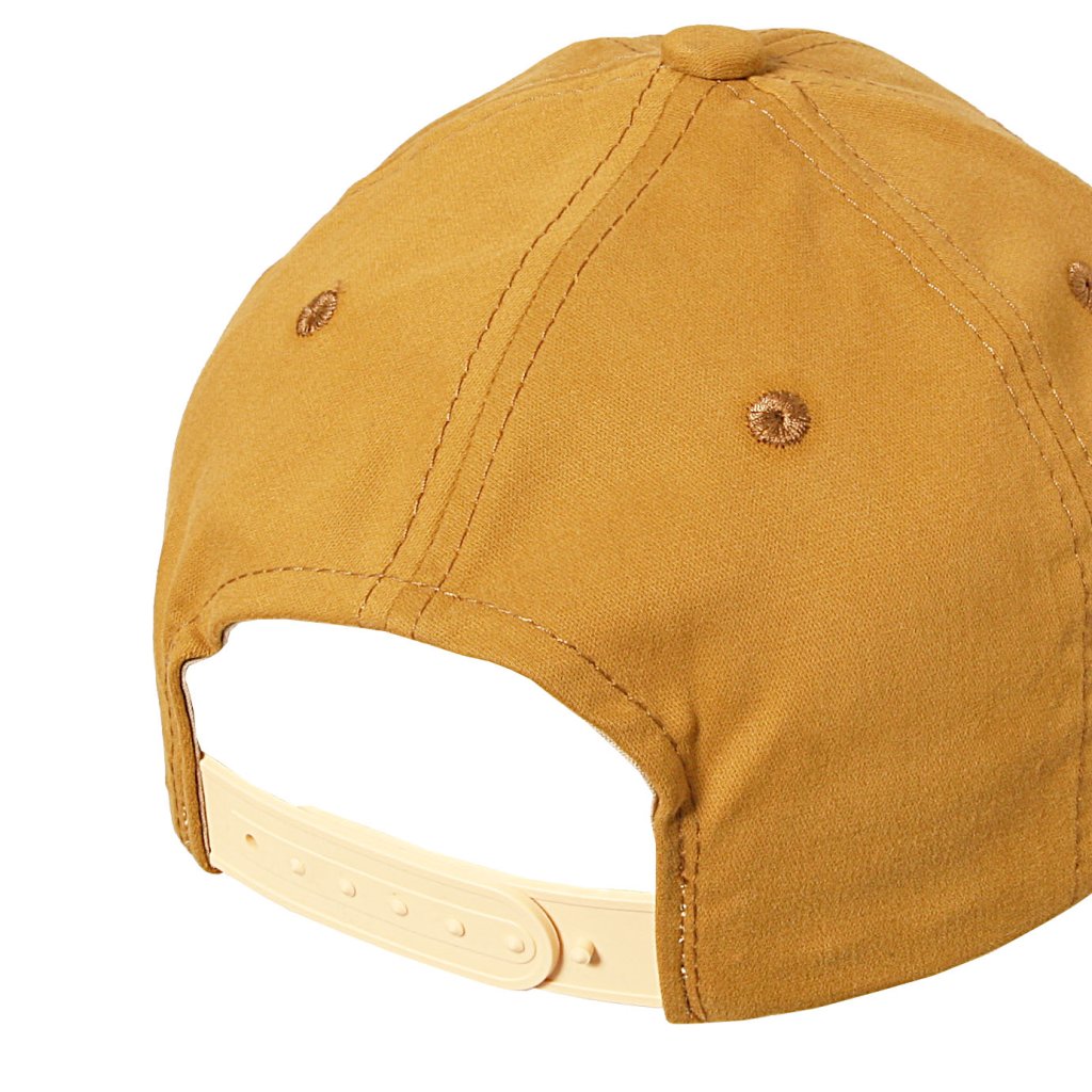 Obvod kšiltovky lze upravit pomocí popruhu a kovové přezky v zadní části.