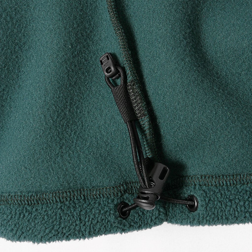 Na hrudní části se nachází horizontálně členěná zipová kapsa s patkou, ideální pro uložení menších předmětů. Dvě svislé lištové kapsy na zip nabízejí dostatek prostoru. Dolní okraj mikiny lze přizpůsobit pomocí elastické pružinky a brzdičky, což zajišťuje, že mikina perfektně padne a udrží teplo.