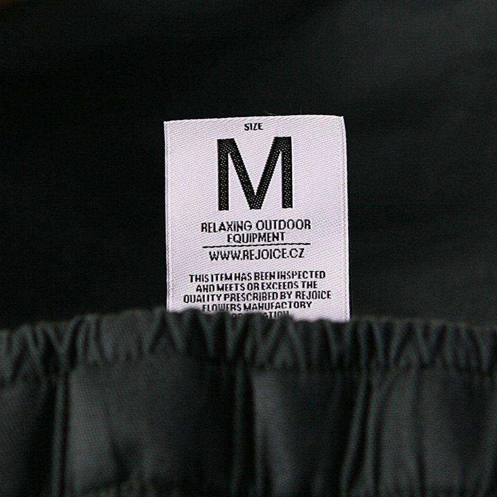 Nohavice jsou ukončeny tunýlkem s pružnou kulatou gumou a samosvorkou na stahování pro pohodlnější úpravu nohavic.