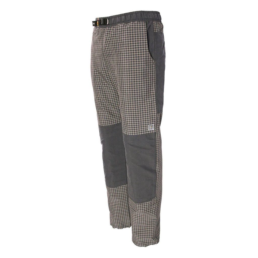 Nohavice jsou ukončeny tunýlkem s pružnou kulatou gumou a samosvorkou na stahování pro pohodlnější úpravu nohavic.