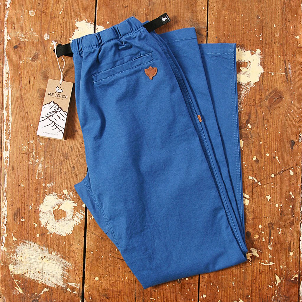Kalhoty jsou pro větší měkkost materiálu a vysrážení předeprány v naší "Rejoice" prádelně.