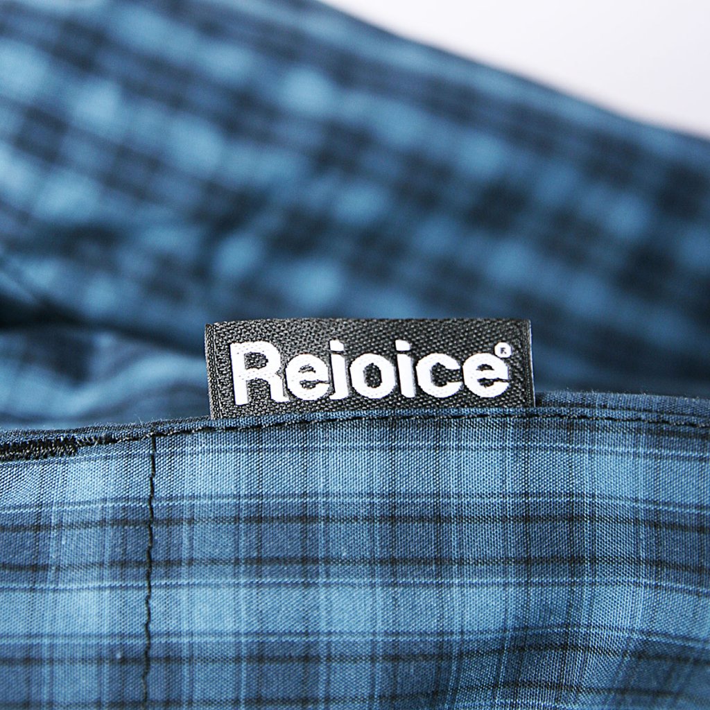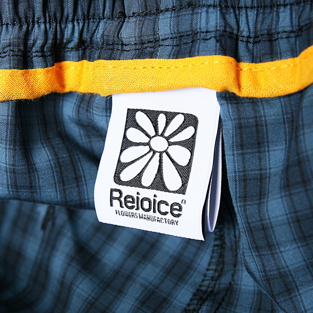 Na levé straně předního dílu je našité logo na vytkávané etiketě. V pase jepro větší komfort při nošení je všita plochá široká guma.